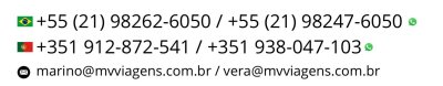 Os valores das diárias abaixo são exclusivas para as reservas efetuadas através da MV Viagens.